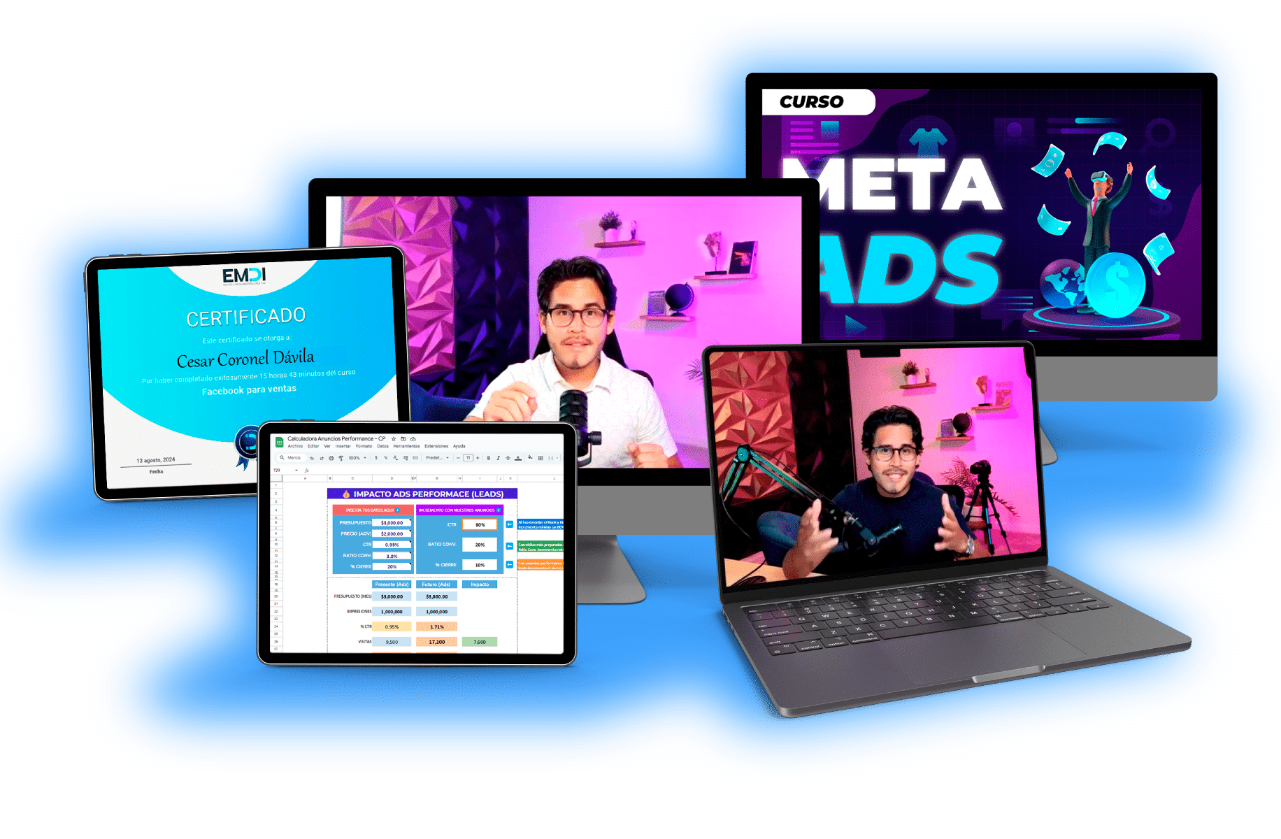 El Curso Meta Ads Performance es totalmente virtual, y súper dinámico, dura xx horas aproximadamente, consta de xx módulos, cada uno con temas claves y específicos que te ayudarán a convertirte en un experto en pauta digital cuando apliques cada enseñanza.